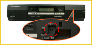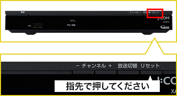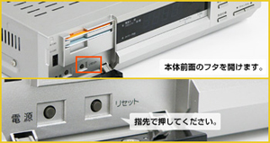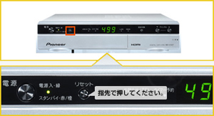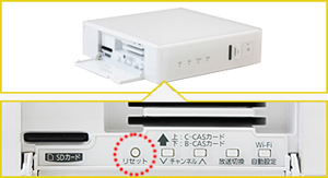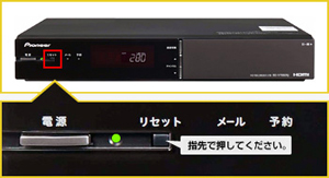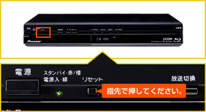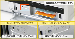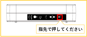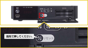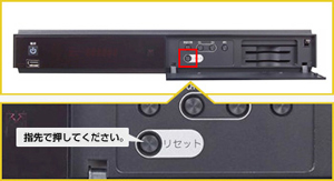 本体前面の「リセット」ボタン(凹タイプ)をピンなどを使って押す