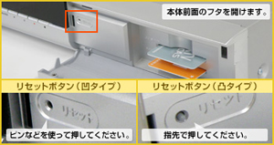 2.「リセット」ボタンを押す(凹タイプの場合はピンなどを使って押してください)